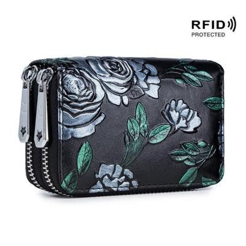 Мода Кожа Женщины Держатель кредитной карты Кошелек Двойная молния Большая емкость 3D Роза Цветок Пе